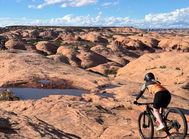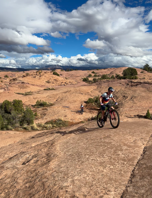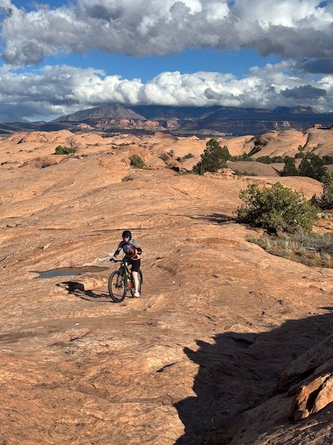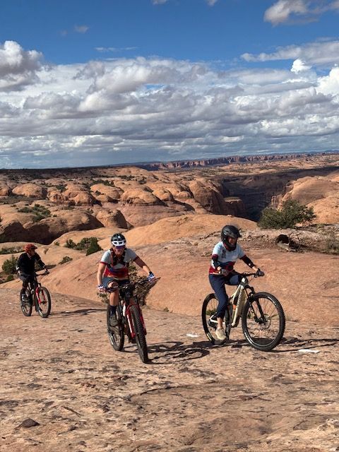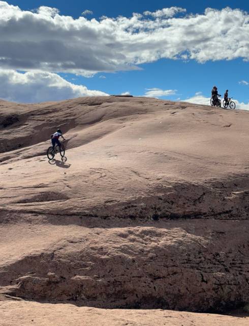 A classic E-bike loop. There are fun turns, flat rock slabs to navigate, amazing views and an occasional jeep that gives you the excuse to stop and catch your breath! On top is one of the best views of Moab valley.